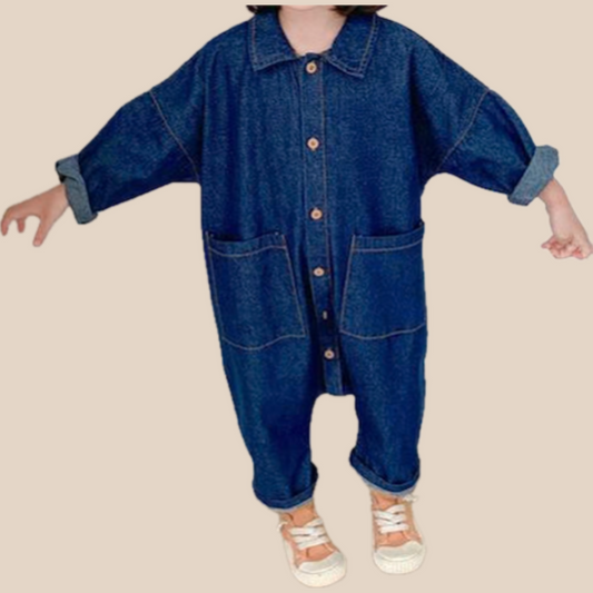 DenimDash™ – Stoere Spijkeroverall met Knopen – Comfortabele Kinderjumpsuit