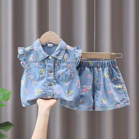 BloomDenim™ – Zomerset met Bloemenprint – Meisjes Outfit voor Warme Dagen