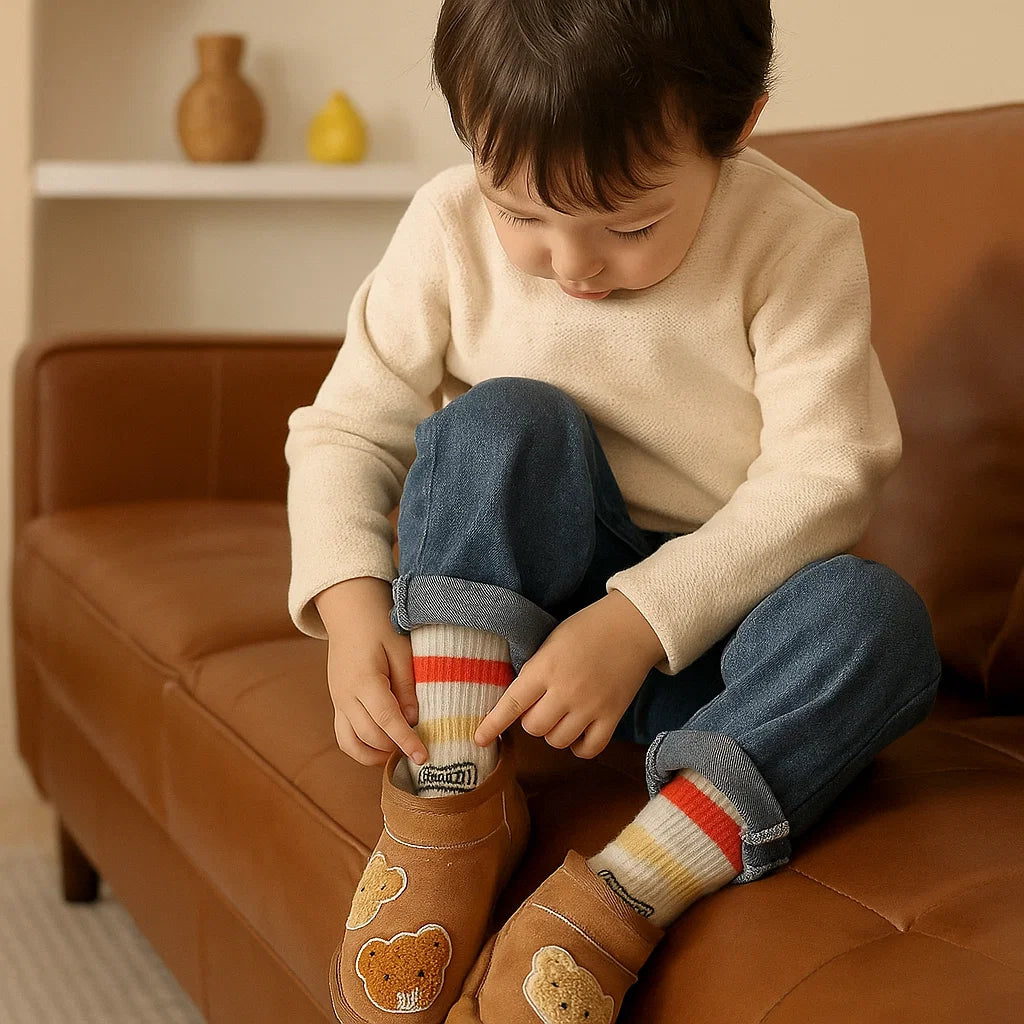De BearHugBoots™ combineren schattige details met praktisch comfort. Dankzij de zachte pluche voering blijven de voetjes heerlijk warm, terwijl het berenontwerp zorgt voor een vrolijke en unieke uitstraling. Deze laarsjes zijn ideaal voor koude winterdagen, waarbij comfort en stijl samenkomen.