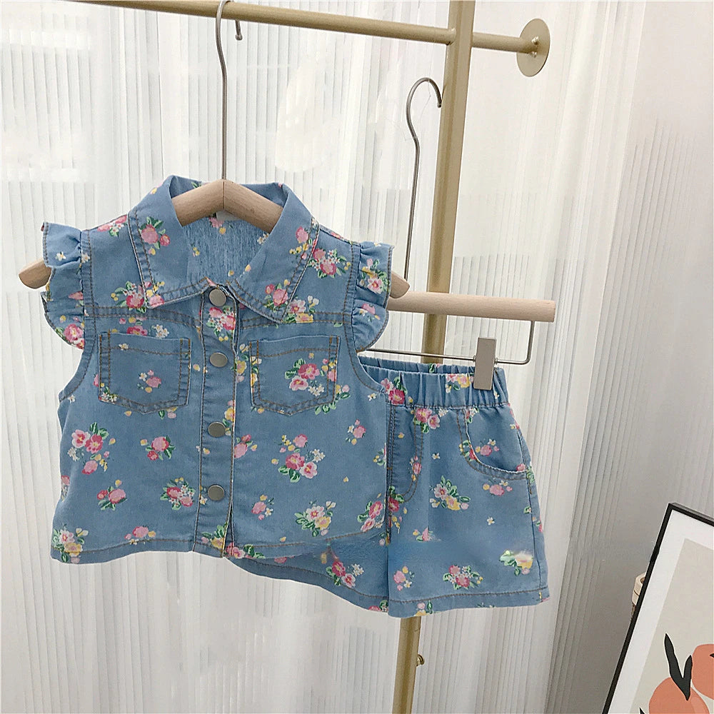 BloomDenim™ – Zomerset met Bloemenprint – Meisjes Outfit voor Warme Dagen