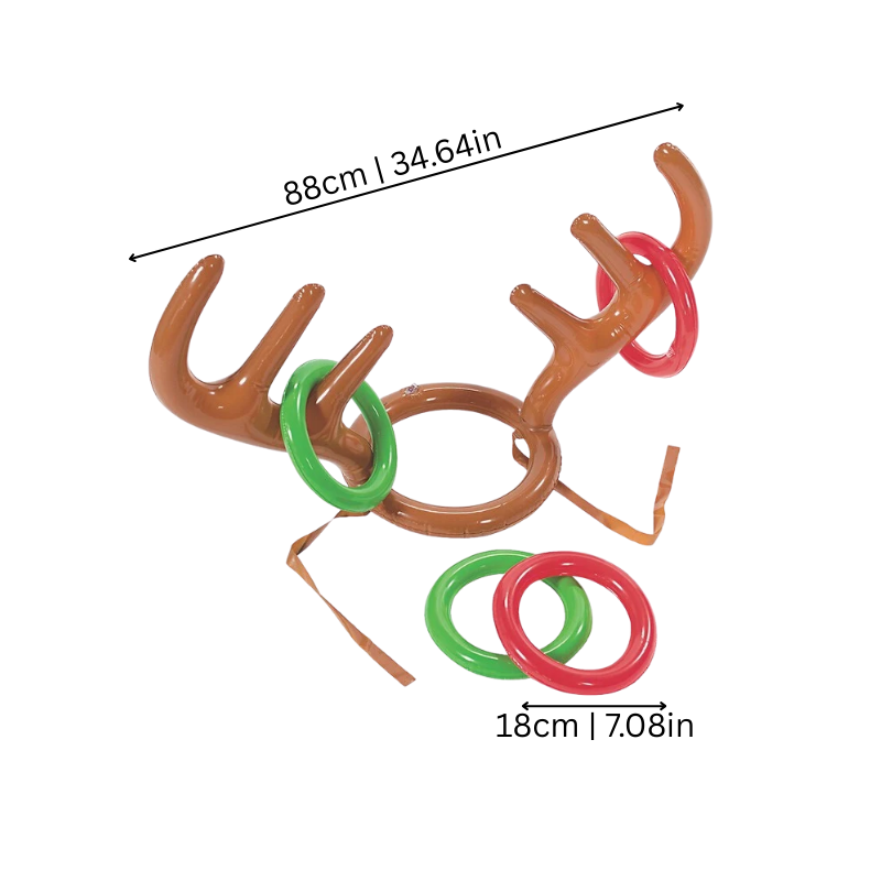 Maak de feestdagen nog gezelliger met de FestivoToss™! Dit grappige en interactieve spel brengt familie en vrienden samen voor lachwekkende en actieve momenten. Of je nu binnen speelt bij de kerstboom of buiten in de tuin, dit opblaasbare rendiergewei-spel zorgt voor plezier voor jong en oud.