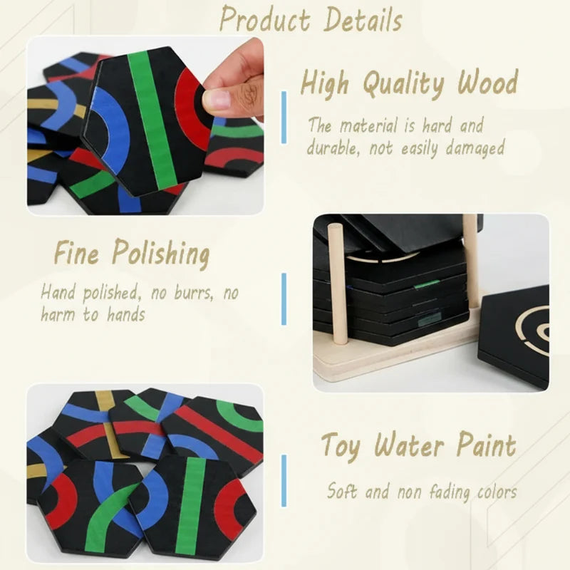 Door de puzzelstukken te plaatsen, te draaien en te combineren, verbeteren kinderen hun fijne motoriek op een natuurlijke manier. Ze blijven gefocust terwijl ze zoeken naar de juiste vorm of kleur — precies wat hun jonge brein nodig heeft om te groeien.