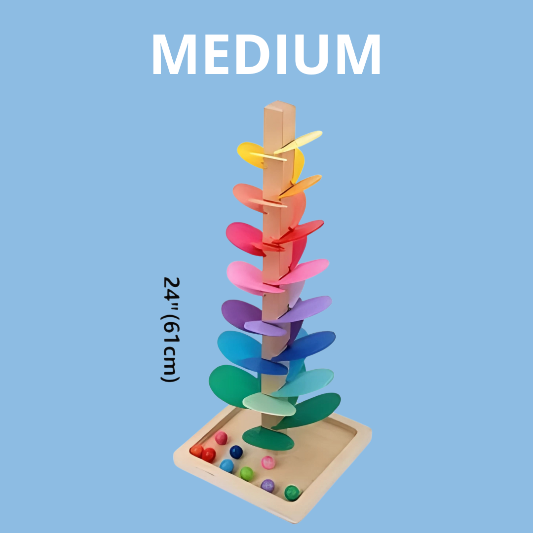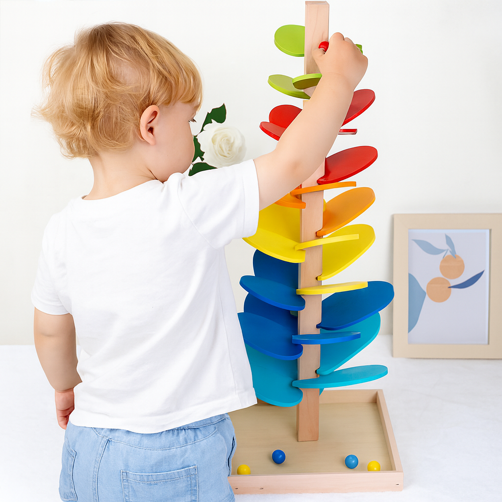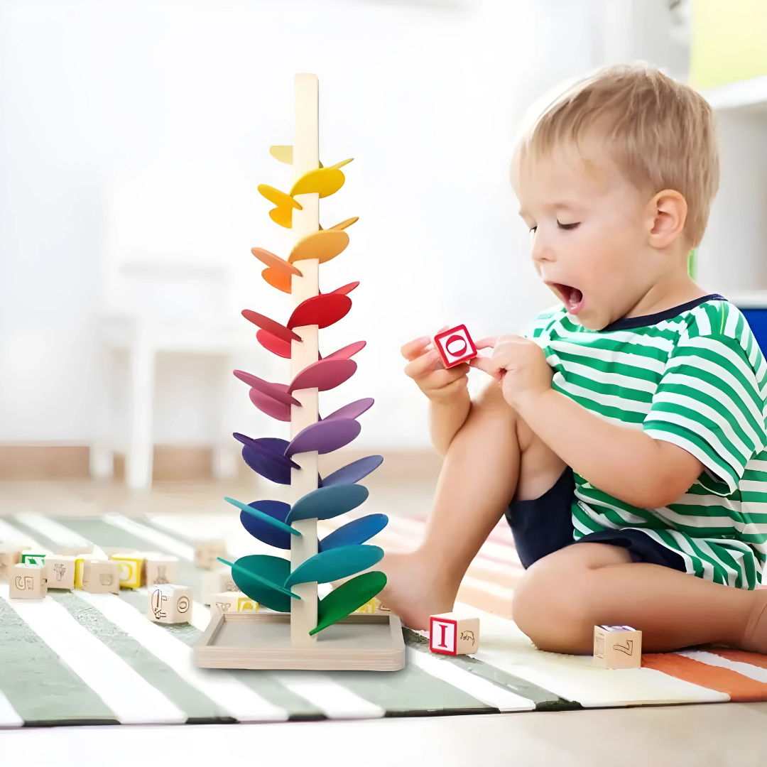 In een tijd vol schermen biedt de Regenboogboom™ een boeiende, educatieve ervaring die kinderen weghaalt van digitale apparaten. Deze kleurrijke houten boom daagt hen uit om spelenderwijs te leren en hun verbeelding te gebruiken, terwijl ze onafhankelijk denken en doen.
